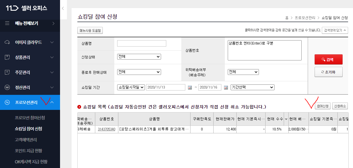<상품등록후 쇼킹딜 프로모션 신청하기>