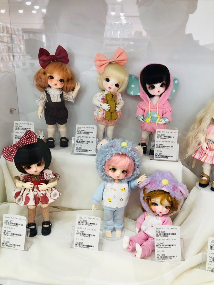여기서부터는... 지름신이 나올 수 있으니 참고하시고 보시면 좋을 듯합니다. 40 중반에서 50만 원대 사람 인간으로 말하면 주니어에 속하는 공주님들 입니다. 이런 인형들을 왜 살까라는 생각을 잠시 했는데 다시는 안 하기로 했습니다. 이렇게 꾸며 놓은 것을 보니 눈은 호강을 하고 왔습니다.