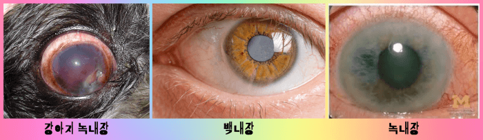 백내장 사진모습, 녹내장 사진 모습을 보면 녹색 모양으로 된 것이 녹내장 사진이고 백색 모양이 백내장 사진인데요 강아지 녹내장 사진도 비슷해 보입니다.