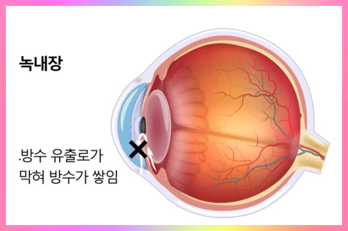 녹내장은 눈의 압력이 올라가서 시력을 잃게 되는 병으로 눈의 안압은 안구에 흐르는 액체에 의해서 조절이 되고 있는데 이 액체(=방수)에 정상적인 흐름이 막혀서 안압이 높아지고 이로 인해 신경과 혈관에 손상이 발생을 하면서 발생하는 것이라고 알려져 있습니다.