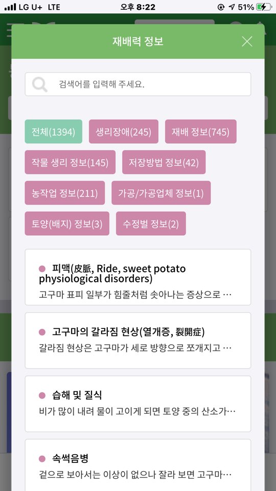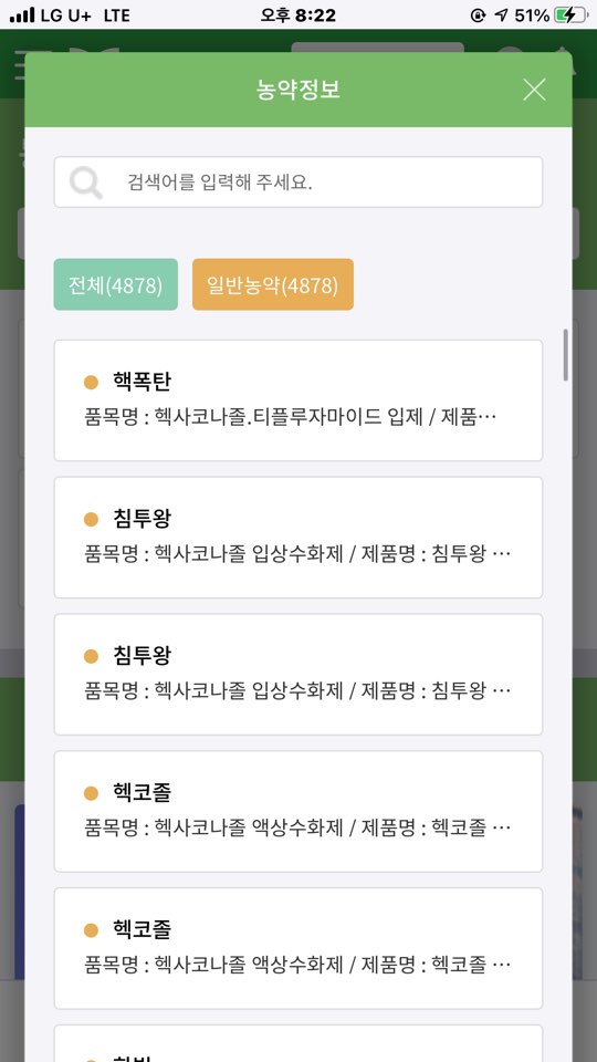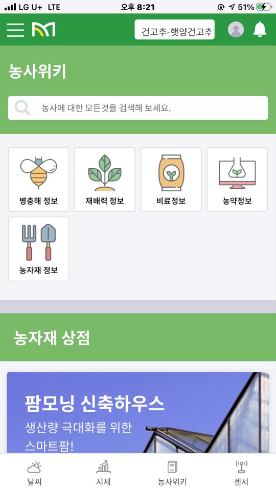 넷째 : 농작물 비료 및 병충해 정보 / 농자재 정보까지 온스탑 쇼핑처럼 기능을 추가되어 있어서 편리합니다.