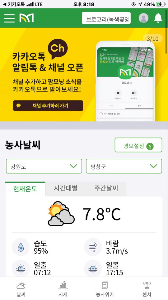 어플 이름 : 팜모닝 몇 가지 기능을 사용해 보니 만든 분의 의도를 알 수가 있었는데요 장기적인 안목도 있는 분 같기도 해서 어플 사용하는 법을 같이 소개드립니다. 농산물을 할 수 있는 기능도 같이 있는데 오늘은 어플 소개만 해보기로 하겠습니다. 이미 팜모닝에서 블로그에 올리셨지만 다시 올려서 전파를 해 드려야겠다는 생각이 많이 들었습니다.