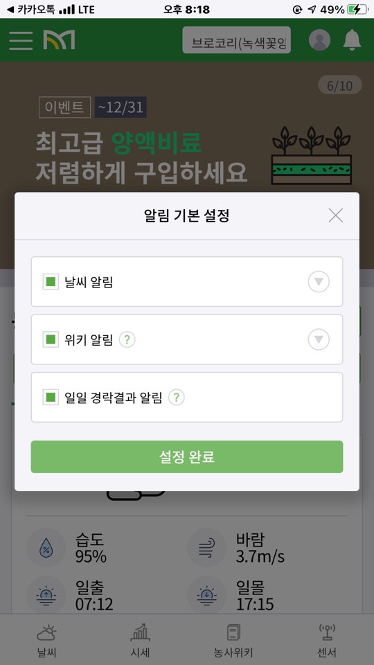 (온도 습도 강우 강풍 세기 등을 설정하여 알람 수신가능)