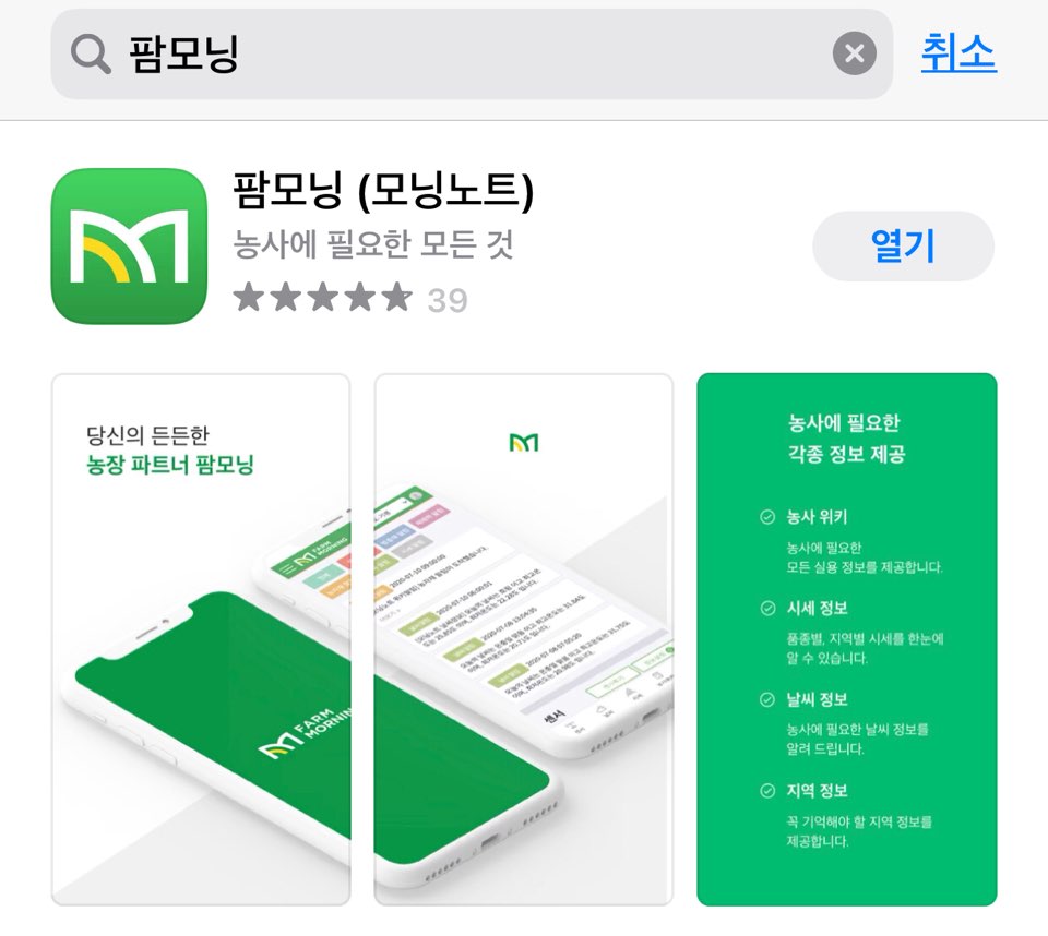 플레이스토어 또는 애플스토어에서 "팜 모닝"