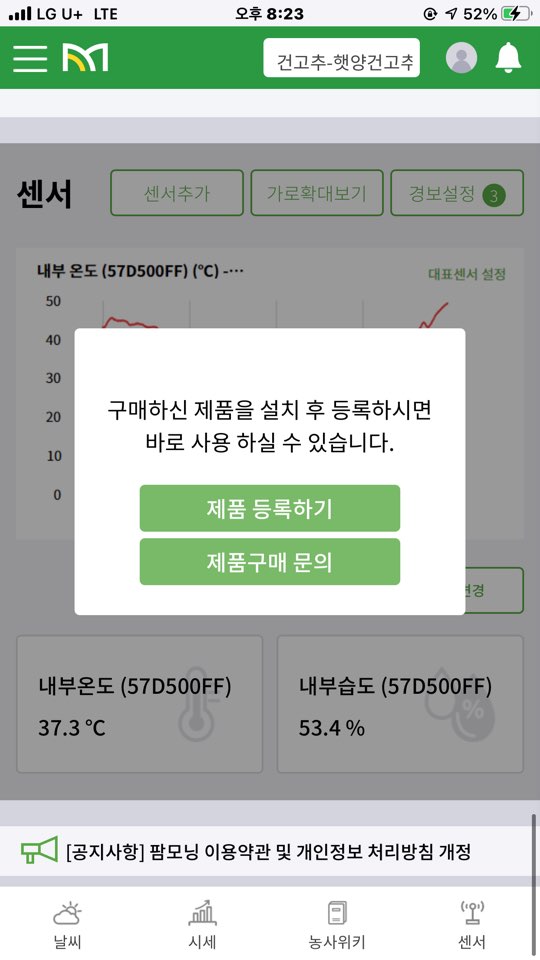 (날씨 서리, 강우, 강풍, 폭염, 저온 등 경보설정 가능)