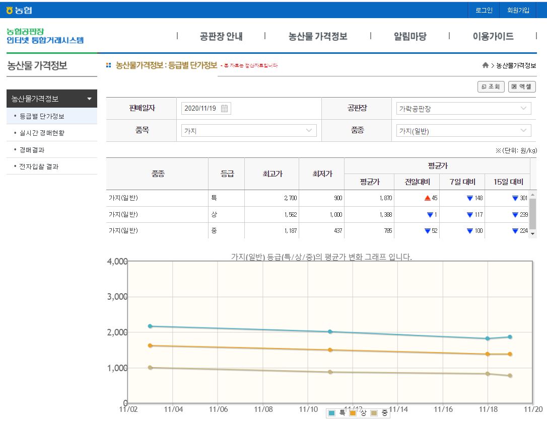 로그인 없이 시세 확인 가능한 곳입니다. 단 경매단가등은 실제 가입이 되어야 확인 가능함