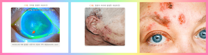 각막을 침범해서 나타나는 대상포진이나 얼굴 머리 귀 근처 발생한 경우 대상포진 사진들을 보면 끔찍해 보이기도 합니다.