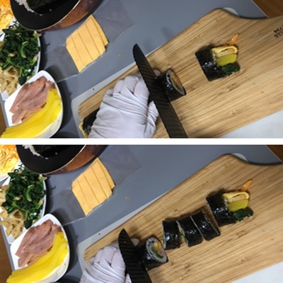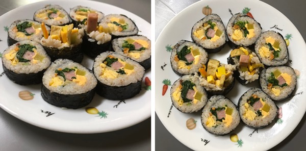 김밥을 말고 있는 모습이에요ㅠㅠㅠ