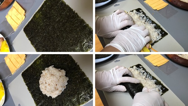 김밥을 말고 있는 모습이에요ㅠㅠㅠ