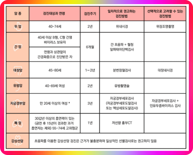 한국인 암 발생 순위별 검진 주기 및 검사 방법