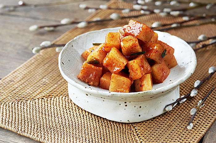 The basic ingredients used for creating this kimchi are similar to those used to make baechu kimchi, with the exception of using radish instead of cabbage.