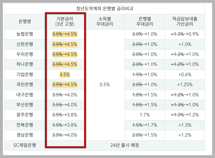 ◼️ 청년도약 계좌 금리 확인 (은행별)