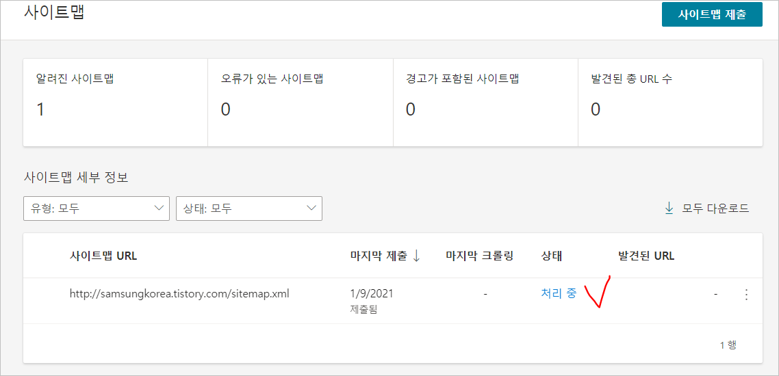 사이트 맵 등록하기 - 본인 티스토리 URL/sitemap.xml
