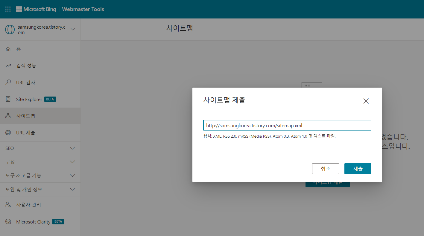 ▼빙(Bing)에 티스토리 검색 등록하기 사이트 입니다.