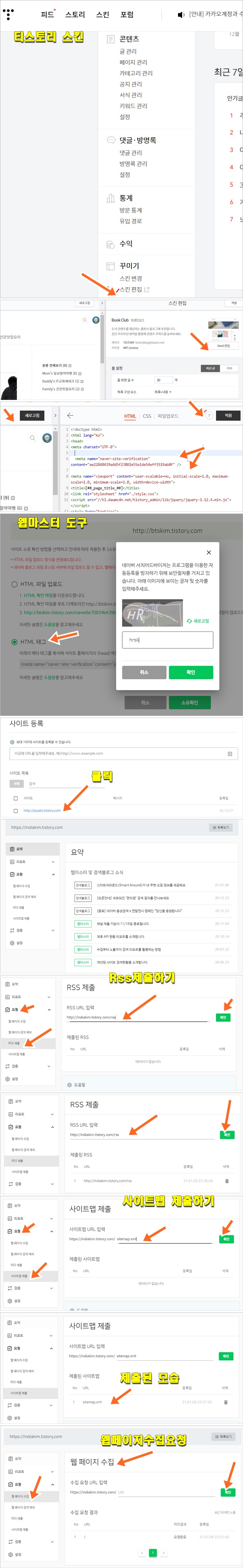 지금부터는 글로 설명하는 것보다느 순서대로 티스토리를 네이버 검색에 용이하게 하기 위해 등록을 하는 절차입니다. 사진상으로 순서 대로 쭈~~~~욱 따라오시면서 등록을 하시면 됩니다.